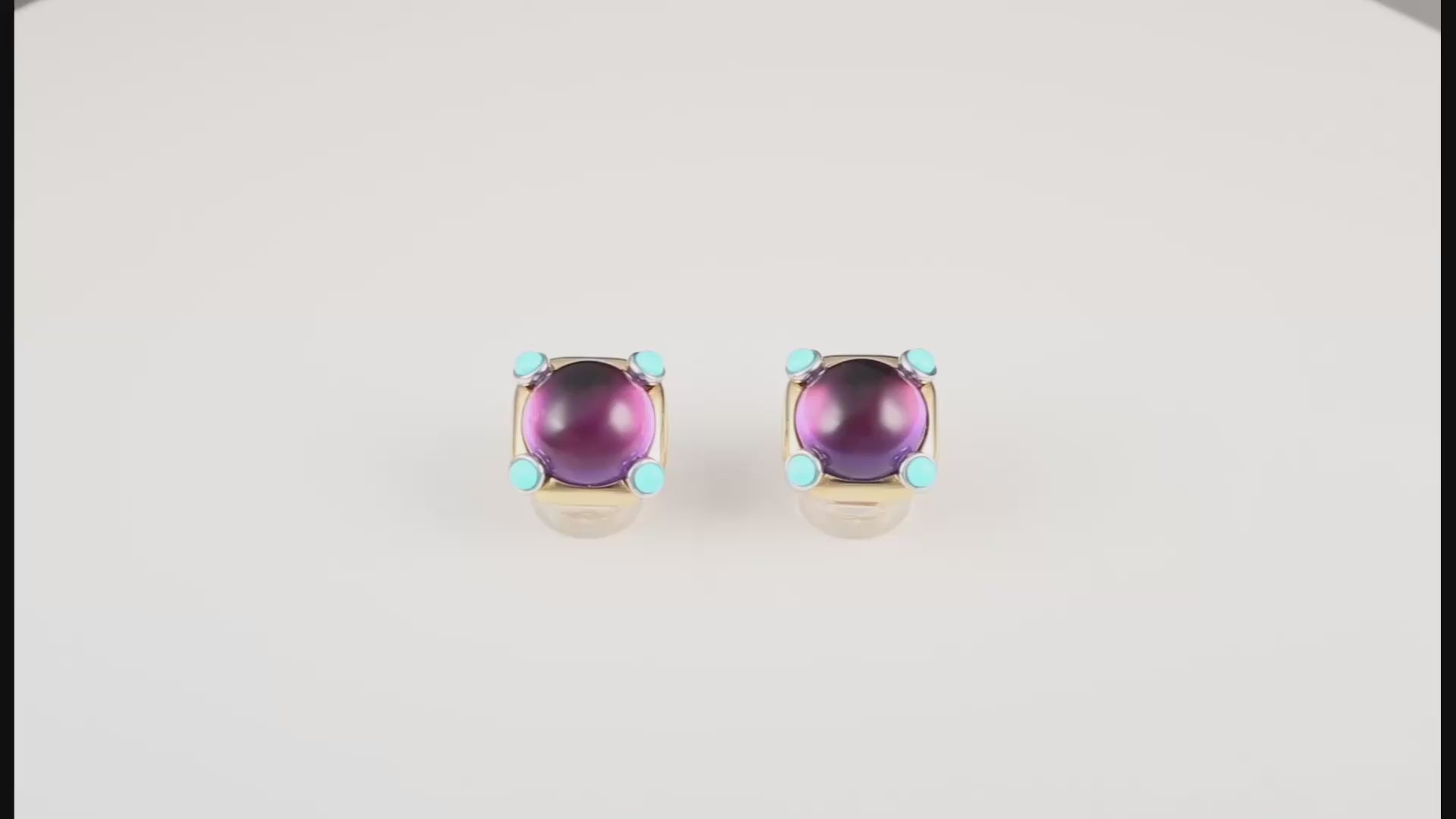 神秘而通透的紫水晶邂逅四颗帕拉伊巴色调(蓝与绿调和)的天然松石,色系与通透度的碰撞,交织出此作品独特的灵动与风情。配以品牌特调的18K黄金和18K白金分别打造金托——紫色Chroma不语,却让“独特”成为表达。