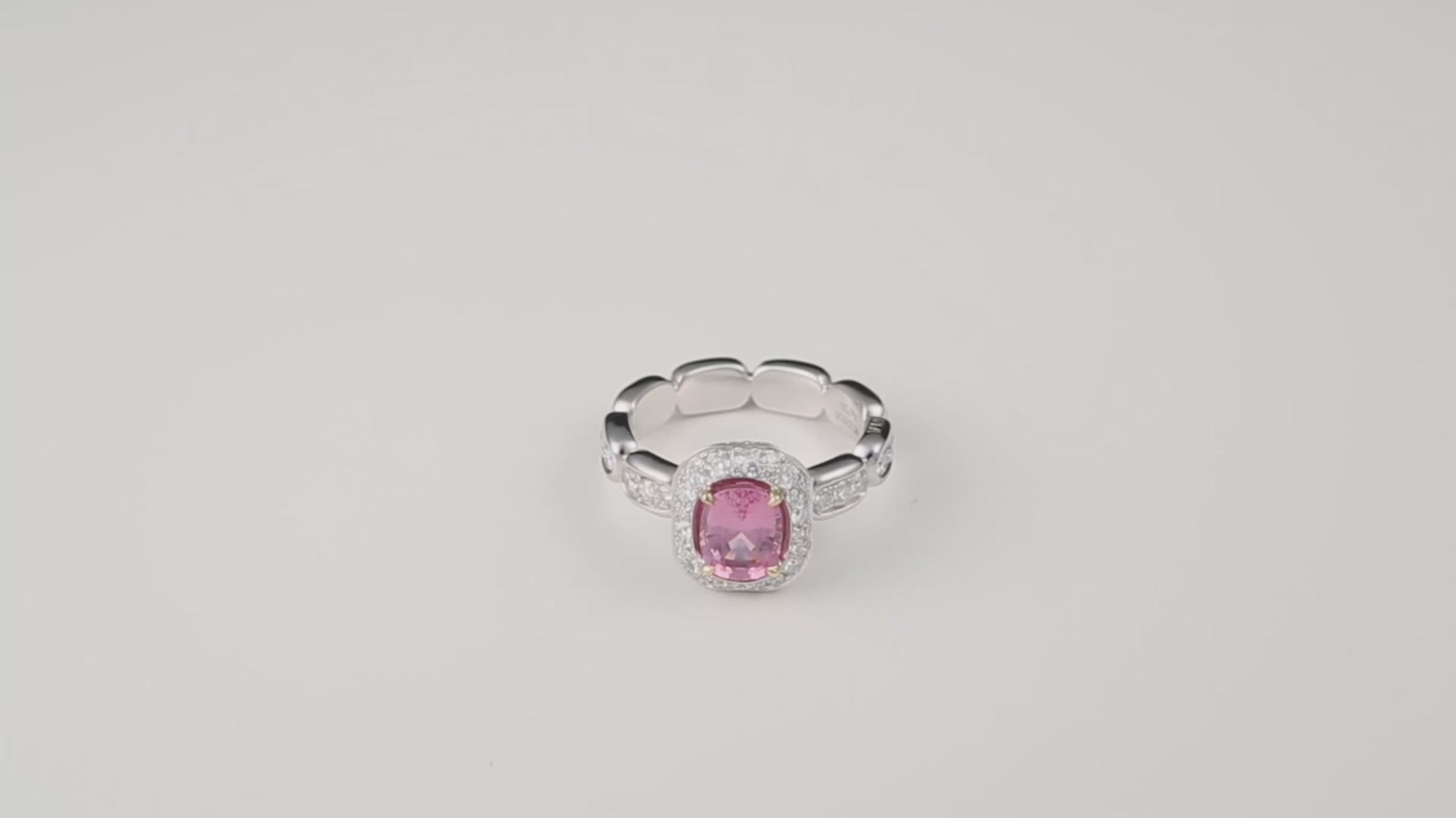 当闪闪发光的粉色遇上“棉花糖”,这枚戒指满足对“甜酷”的所有想象。主石选用FOMA臻选天然樱花粉尖晶石,以其清透温柔的色泽与自然火彩闻名——粉嫩中透出一抹明亮光泽,宛若春日微风下的樱花花瓣,轻盈浪漫。